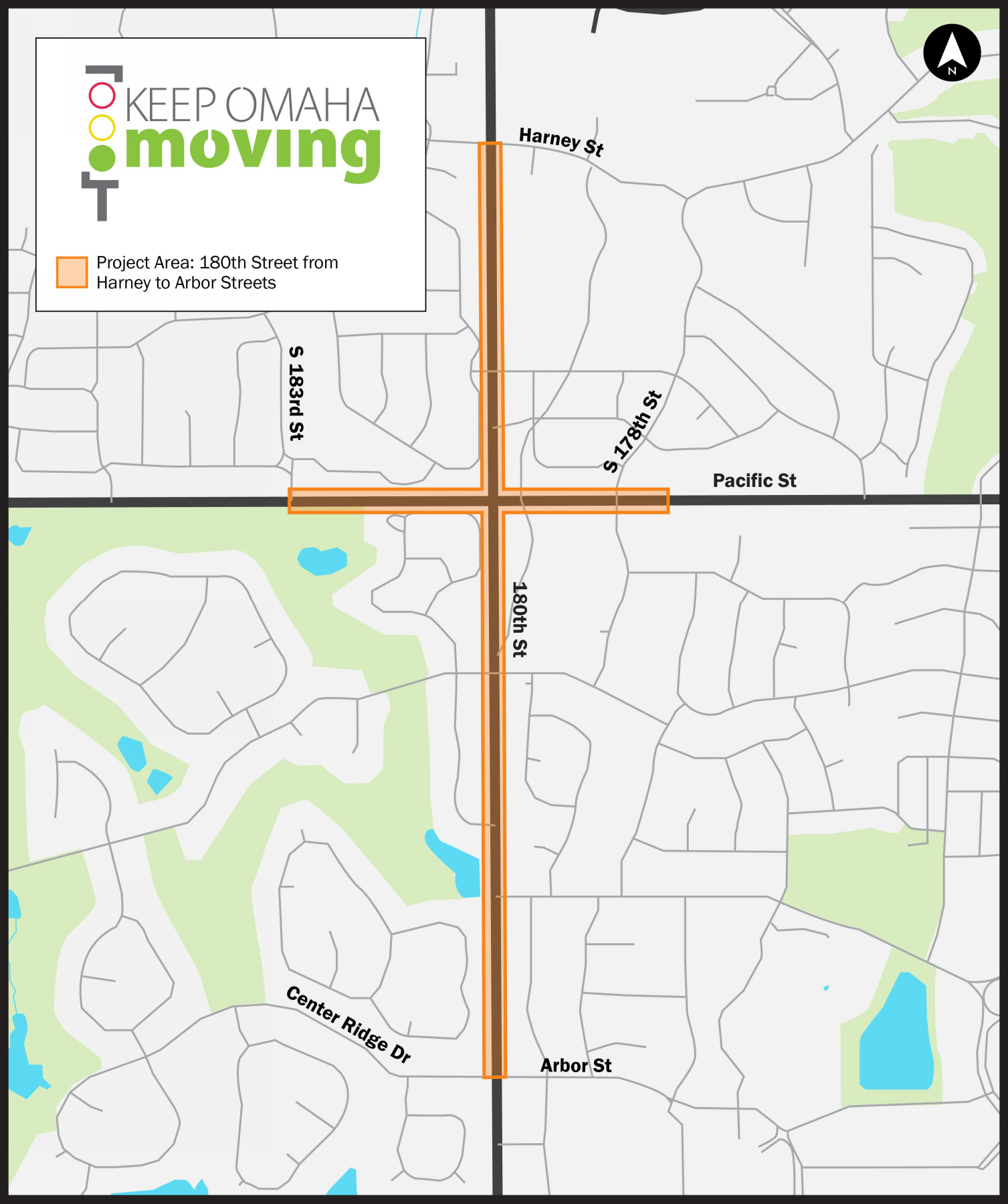 180th Street between Harney and Arbor Streets is planned to be reconstructed to a four-lane roadway, divided by a median. These Improvements will widen the existing two-and three-lane rural roadway sections. In addition to the additional lanes, other improvements include storm sewers, sidewalks and ADA curb ramps, a multi-use sidepath, street lighting, and intersection improvements. This project will improve safety and capacity for transportation users in many modes, including vehicle, pedestrian, and bicyclists.