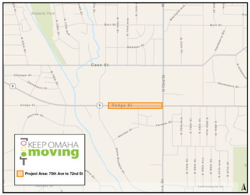 As a part of the Crossroads redevelopment site, improvements to Dodge Street will need to be made. A second eastbound left turn to 74th Street will be added to create dual left turn lanes off Dodge. The need for the dual left turn was identified through the traffic study that analyzed current and future impacts with the Crossroads redevelopment. To construct the additional left turn lane all three west bound lanes of Dodge St will need to be removed and reconstructed between 75th Ave and 72nd St. The entrance to the Crossroads development at 74th will be widened as well to include additional turn lanes. Lastly a new traffic signal with be constructed at 74th & Dodge to accommodate the additional lanes. All these improvements to Dodge Street will help maintain traffic flow through this corridor as the development begins to attract more vehicles.As a part of the Crossroads redevelopment site, improvements to Dodge Street will need to be made. A second eastbound left turn to 74th Street will be added to create dual left turn lanes off Dodge. The need for the dual left turn was identified through the traffic study that analyzed current and future impacts with the Crossroads redevelopment. To construct the additional left turn lane all three west bound lanes of Dodge St will need to be removed and reconstructed between 75th Ave and 72nd St. The entrance to the Crossroads development at 74th will be widened as well to include additional turn lanes. Lastly a new traffic signal with be constructed at 74th & Dodge to accommodate the additional lanes. All these improvements to Dodge Street will help maintain traffic flow through this corridor as the development begins to attract more vehicles.