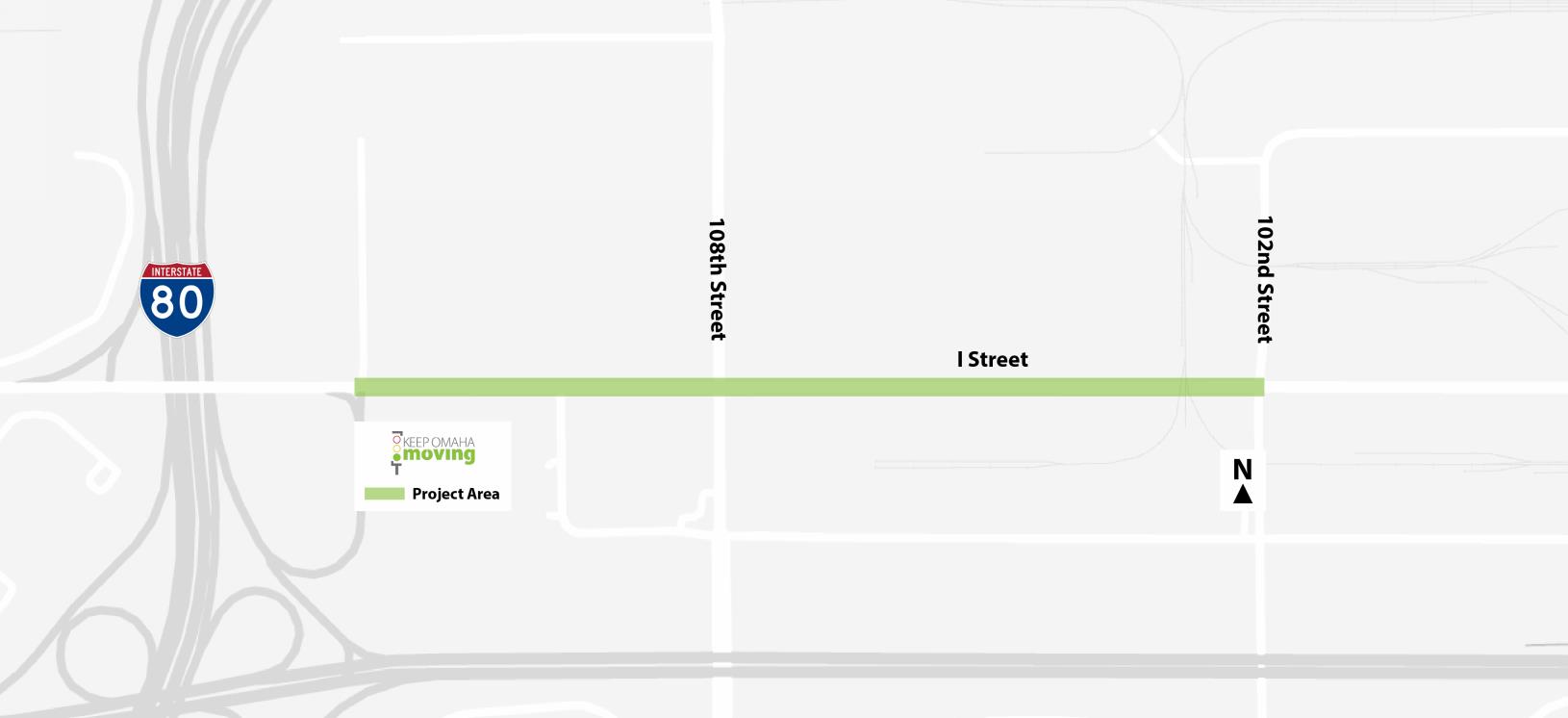 The City of Omaha’s “I” Street project between 108th Street and the Interstate 80 (I-80) ramp, is scheduled to begin on Tuesday, May 10, 2022. Utility relocation work has begun and will continue throughout the project corridor for the remainder of the 2022 construction season into 2023. Utility agencies will coordinate with properties as needed during their operations. The contractor, Charles Vrana & Son Construction Company, plans to begin construction with a full closure of “I” Street from 108th Street to the I-80 ramp beginning May 10, 2022.